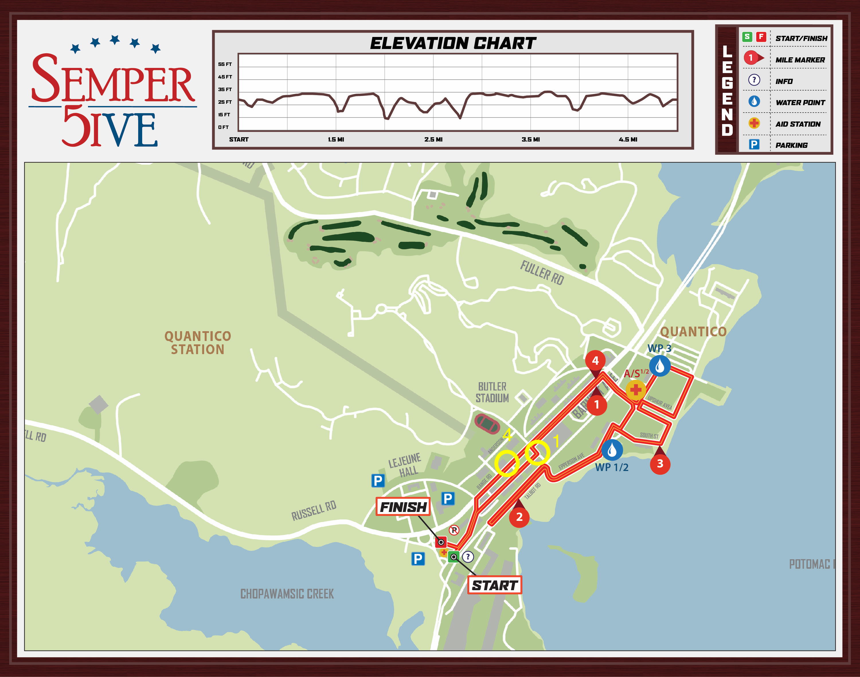 Our primary mission is eyes on the course to provide safety and back up the Marine Corps Marathon personnel. In the event of a downed runner, contact Start immediately. There will be an ambulance on site for the duration of the event under the command of Top Doc.